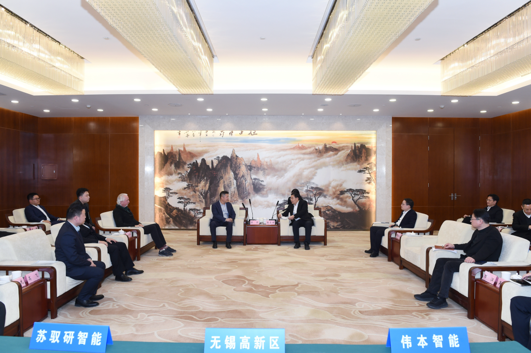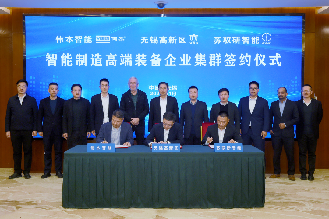 1月5日,偉本智能董事長彭榮、瑞典艾克斯康董事長卡爾、蘇馭研智能總經(jīng)理洪文標一行來訪無錫高新區(qū)。無錫高新區(qū)黨工委書記、新吳區(qū)委書記崔榮國與彭榮、卡爾、洪文標一行交流會談,并出席智能制造高端裝備企業(yè)集群簽約儀式。區(qū)領(lǐng)導顧國棟參加活動。